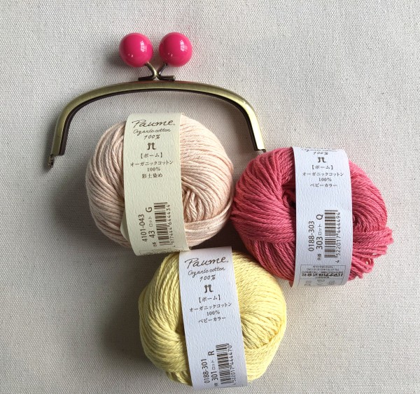 糸とがま口を用意しました。がま口は、指定のものとはサイズはほぼ合ってるけどデザインが違うので、上手くいくかどうかは心配ですが…やってみます!糸が柔らかくて気持ち良い~。