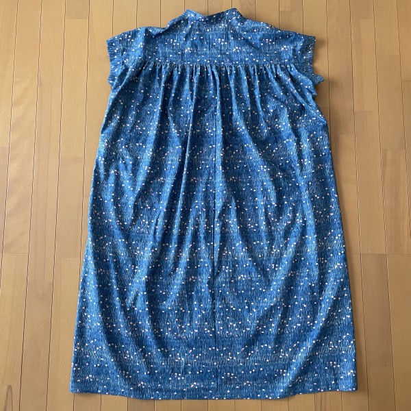 | 『シンプルで着やすいまいにち服』から、バンドカラーのシャツワンピースを縫いました。 Sサイズで作りましたが、150㎝には長めの丈です。 実は布を切るときに前見頃の端を縫い代無しにしてしまい(本当は6㎝!)急遽前たてを作って付けました。焦った〜 ユザワヤさんで購入したninaの布で、落ち着いた可愛さです。 |