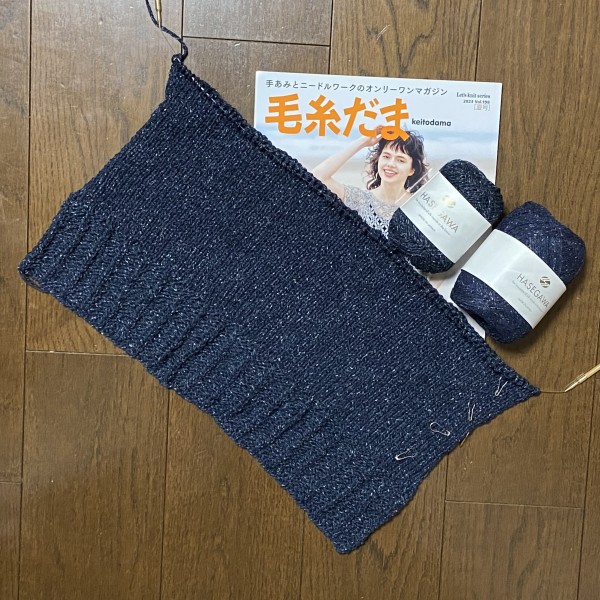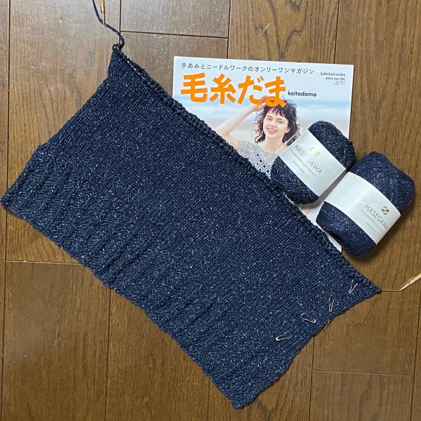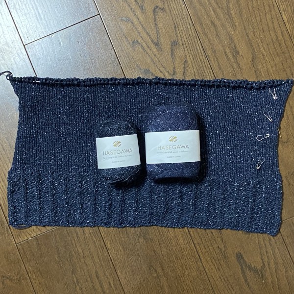 シルクハセガワさんのヨロズとギンガ3を引き揃えにしてレシピよりも少し太い針でSサイズで編むことにしました。