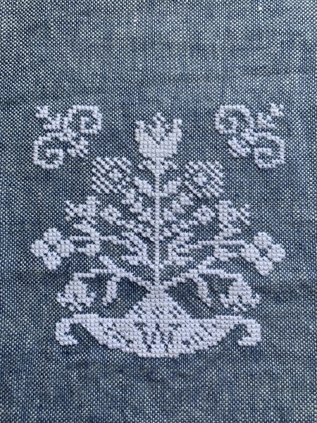 クロスステッチが大好きでカウントできる生地を見たらなんでもクロスステッチしたくなって、麻生地にステッチしました。