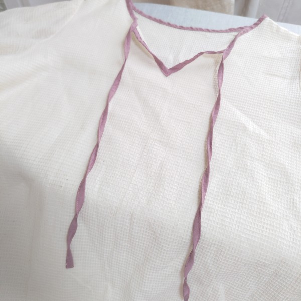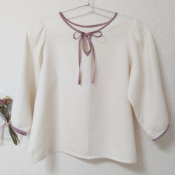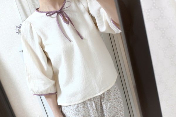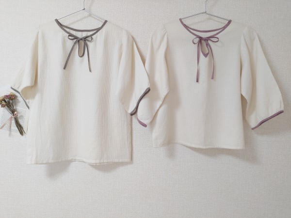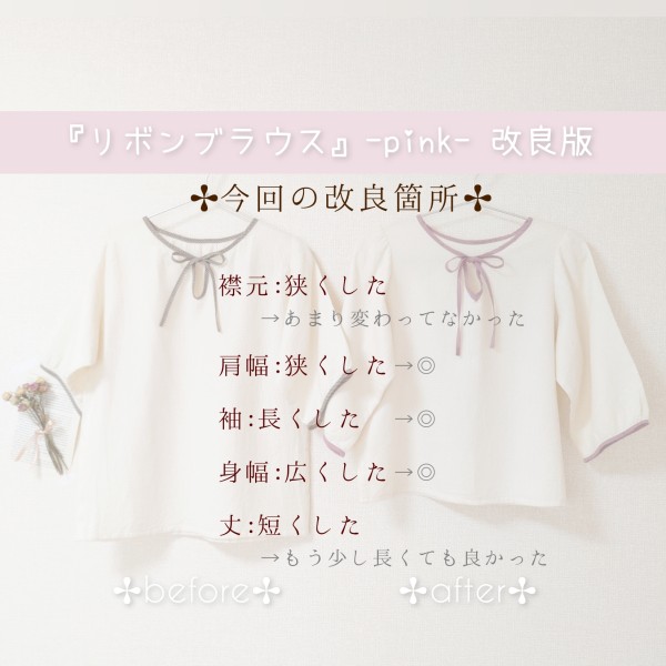 | 所々うまくいかなかった、ひとつ前のブラウス。 今回はそのリベンジ作品です! 一部前作を参考にしつつ、肩を狭めたり、丈を短くしたり… と、型紙は1から作り直し。 細かい所の粗はありますが、無事に自分サイズに仕上げることができました^^ |