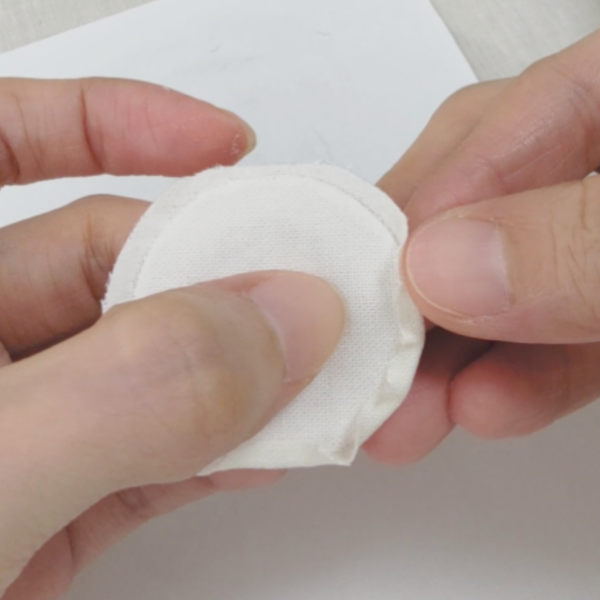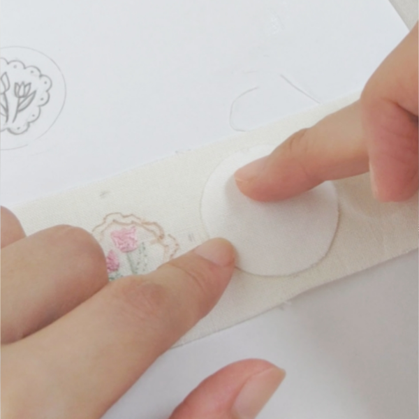 丸くくり抜いた布を2枚1組に貼り合わせ、