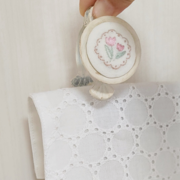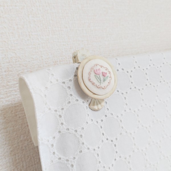 ペイントしたクリップに刺繍パーツを貼り完成!