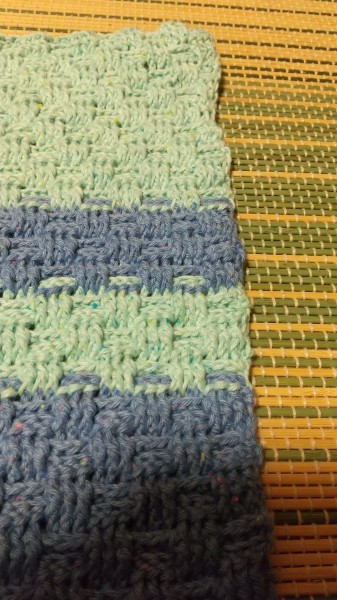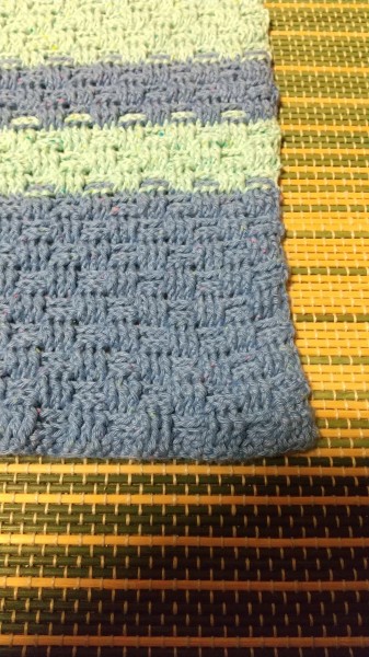 | コットン毛糸で編むランチョンマット 購入した毛糸が思ったより細かったので3/0号のかぎ針で編むことに。縦30cm、横40cmのサイズに編む予定。 |