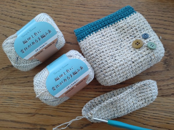 | パンドラハウスの夏糸セールで買ったネップ入りのこの糸の使い道に迷ってて...あれこれ編んでみては解きを繰り返してたけど、ようやく形にしました。 これもまた模様編みにしようか悩んだ末にシンプルに細編みにして、口金部分の色を変えることに。 よーく見るとブルーと黄色のネップが入ってて、調度その色の余り糸が有ったので合わせてみました。 アクセントに表裏で色を変えて ボタンを飾りに付けて、ようやく納得のいく物ができました(*^^*) |