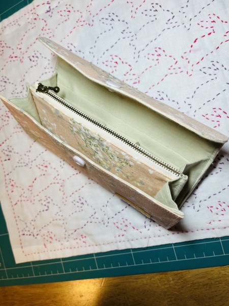 カード入れ8枚、コイン入れ、お札入れ2ヶ所の横長財布。