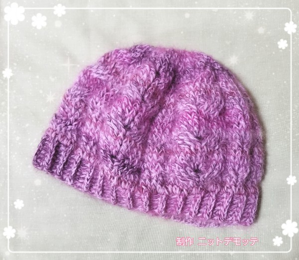 すてきにハンドメイド掲載作品のアランニット帽子です。