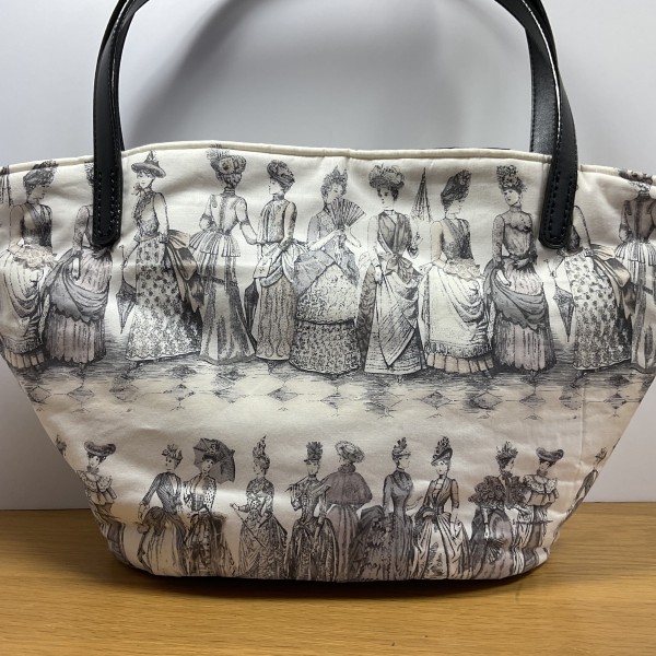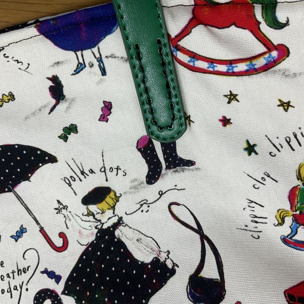 ヨーロピアン柄だったのでマルシェバッグに。色違いの持ち手が4色あったので合わせてみました。