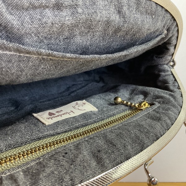 がま口修行中。ふんわりさせたくて接着芯に重ねてキルトを挟んだのですが、がま口がパチンと閉まらなくなってしましました。がま口は難しいですね・・・(^-^;)