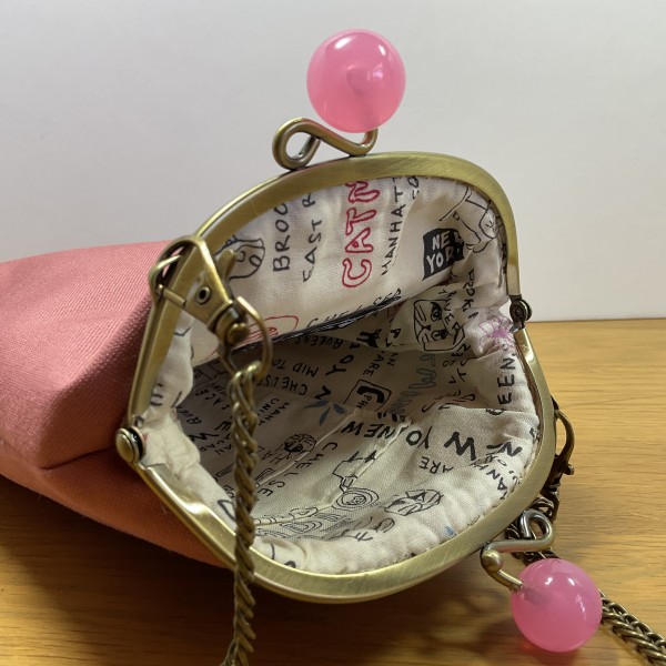 スマホがちょうど収まる大きさのがま口ショルダーです。