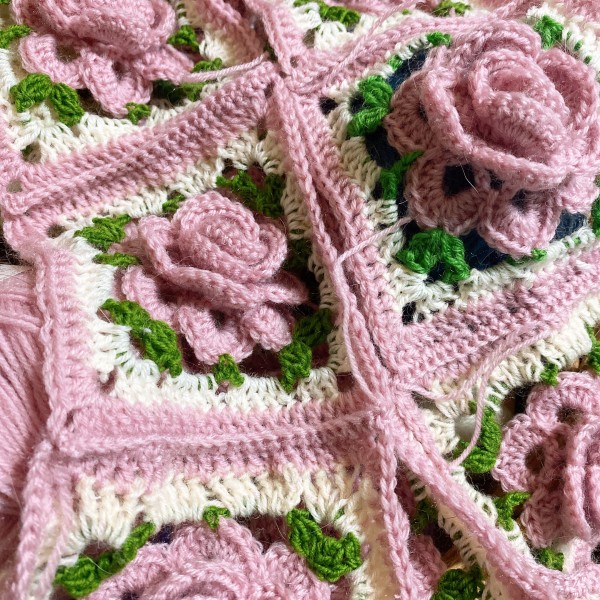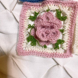 ふわふわのお花で、素敵な膝掛けになりそうですね!