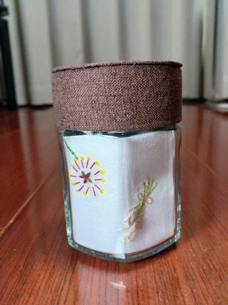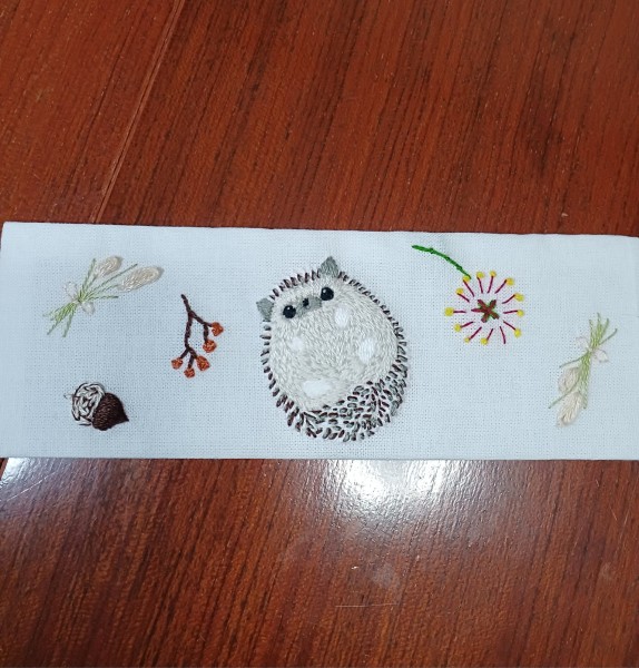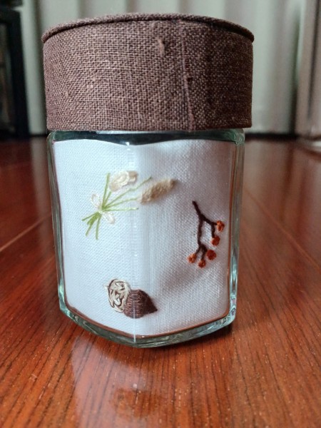 | 空き瓶リメイクの秋バージョン出来ました。 苦手なサテンステッチと、始めてのロングアンドショートステッチにとても手こずりました。途中で訳が分からなくなってしまって、とりあえず刺して終わらせた感じになりました。 刺繍も難しいですね。 でも、可愛いハリネズミになったかな~と思います。 |