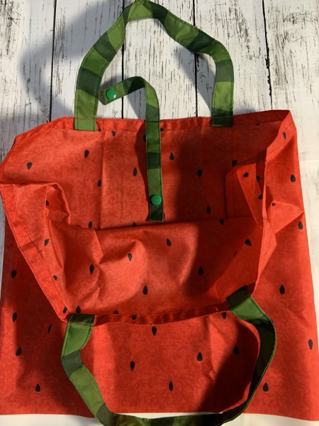 スイカ柄のナイロンオックス生地でエコバッグ作りました。