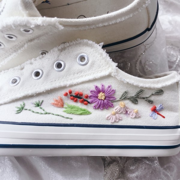 アウトレットで買ったスニーカーに刺繍しました。