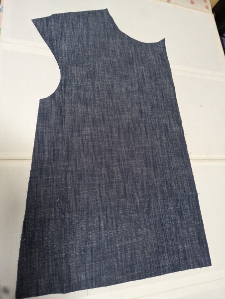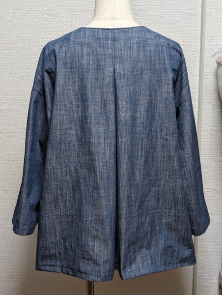ポッチャリさんの娘からのリクエストです。前のボタンは要らないと言っていましたが、ある方ご良いような……。「ぽっちゃりさんもいろいろ気にせず着たい服」のノーカラーのジャケットです。