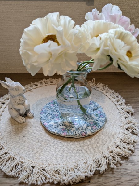家に咲いた小さな花を小さな瓶に生ける為のミニコースターを作りたかったので、