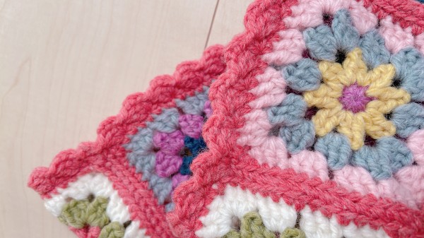 この状態からだと一度巻きはぎを解いてからになってしまいますが、アイロンをかける時にモチーフの出来上がりサイズの線を引いた紙を使ってまち針で大きさを合わせて止めてからすると良いです