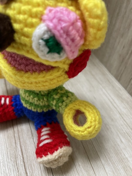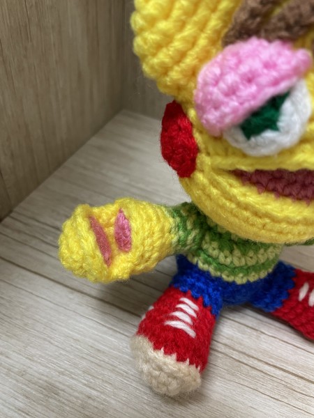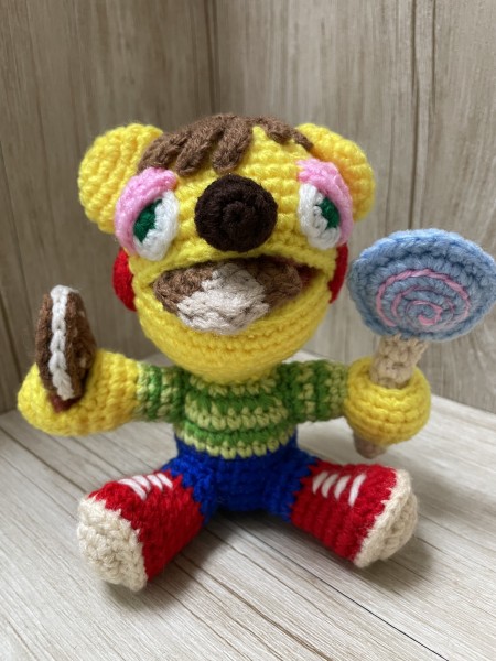 ロボットのような手で、クッキーをはさんで、キャンディがささります。口にも入ります。