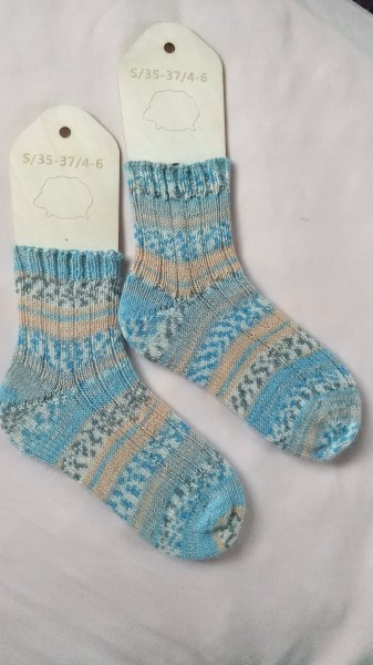 opalのソックヤーンで編む変わりゴム編みの手編み靴下