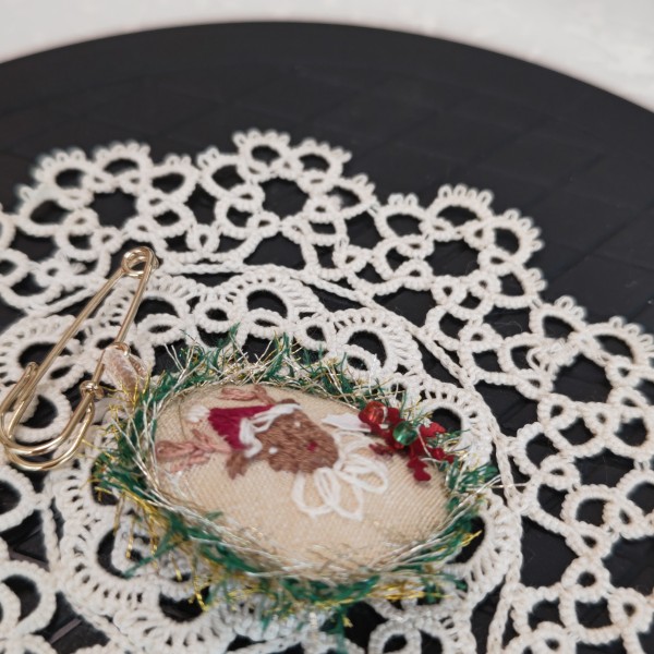 スミルナステッチ、数種の糸で4重に刺し、クリスマスのフサフサ、キラキラを表現しました。