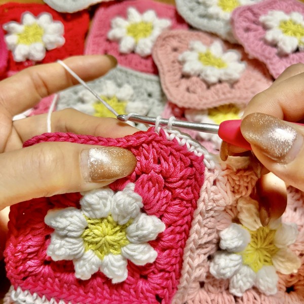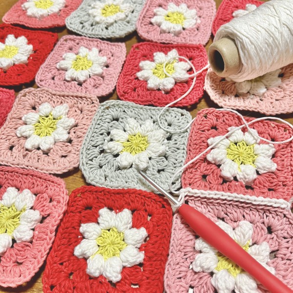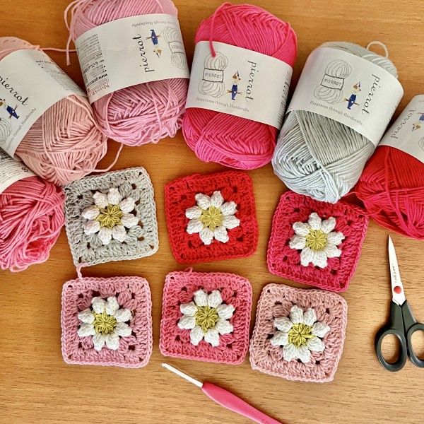 単色なものばかり編んでいると飽きてきてしまって、華やかな色使いたくなっちゃいます