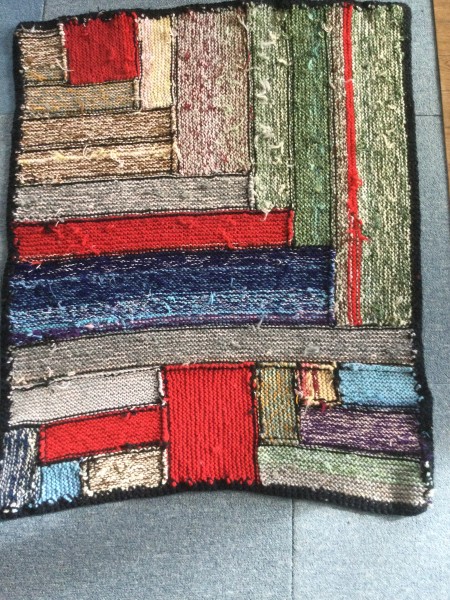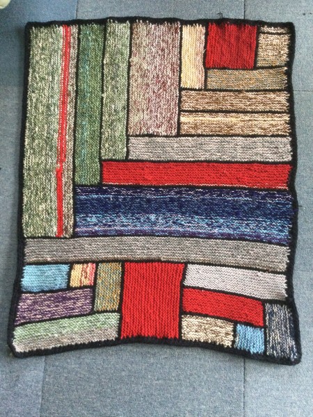 梅村マルティナさんのステンドグラスマフラーの編み方を参考にひざ掛け?ラグマット?に編み上げました。
