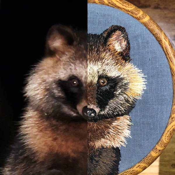 | ▼制作過程ありの投稿はこちら https://tetoito.com/items/9353 「製作中」の作品を「完成」にできることに気づかず、 こちらで完成品のみアップしてしまいました; みなさまからの「いいね!」が嬉しかったので、 こちらの投稿はこのままにさせていただきます。 = = = = = ホンドタヌキ-01- ひょっこり覗くホンドタヌキ。 夜に出会うとちょっと幸せな気分になりますね。 前回の作品では、 刺繍図案を作る段階で 使用する糸の色も決めてから 刺し始めたのですが、 今回は画面を並べつつ、 その場で色を選びながらやってみました。 いや〜〜〜 むずかしい!笑 次回からはまた 色彩設計してから刺そうと 心に決めました。笑 それから、 レリーフ的な半立体刺繍の実験として、 おでこから鼻筋にかけて羊毛フェルトを入れてみたのですが、 刺してるうちに目立たなくなってしまいました…笑 まだまだ試行錯誤の段階ですが、 動物刺繍、楽しいです。 |