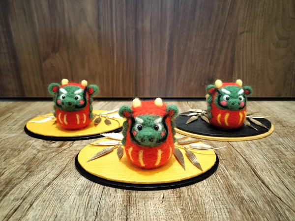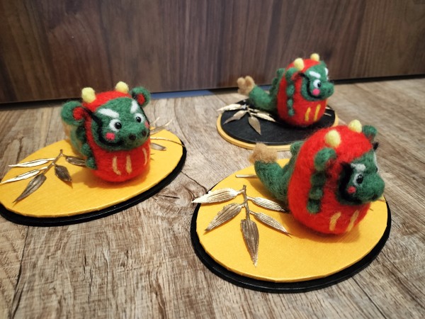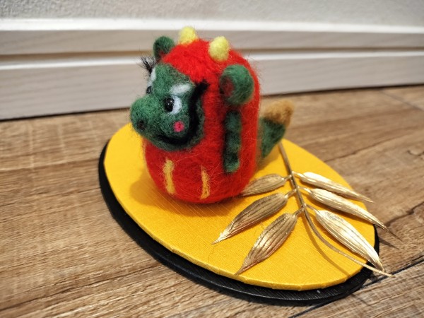 来年の干支、辰の羊毛フェルトの干支飾りです。12支の中で一番難しいと思ってましたが、想像の動物ですので結構好きなように仕上げて見ました。