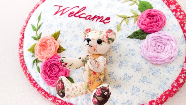ミニチュアテディベア付きのウェルカムボードを制作しました。