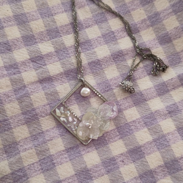 スクエアパーツとプリザーブドフラワーを組み合わせてます。