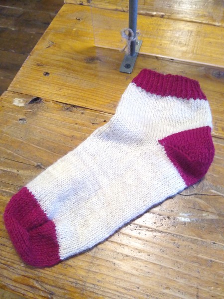 初めて編む靴下 練習とサイズ調整のため、家にあったあまり糸で。