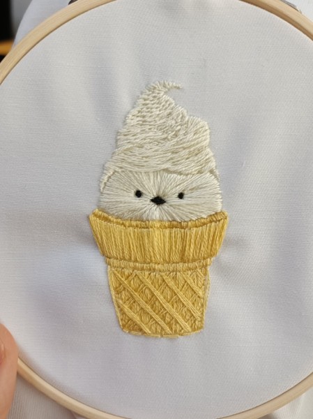 写真画像をイラストに描き、刺繍ミシンデータに変換し、ミシン刺繍しました。