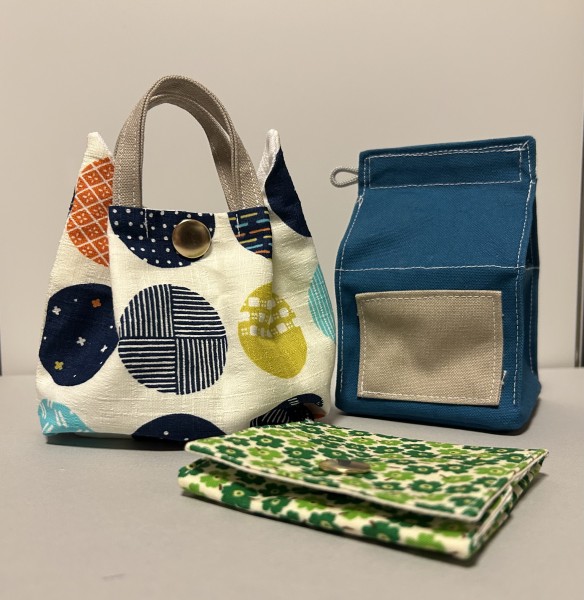 それぞれ、残った端切れで作れる物をYouTubeや本などから探して作りました。スマホを置いたり、手芸小物を入れたり。ネコポーチには飴を入れて持ち歩いています。