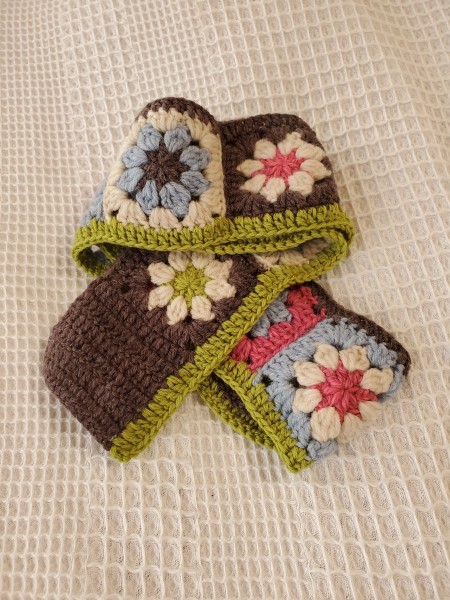 好きな色のモチーフをつなげて軽く巻けるマフラーにしました。