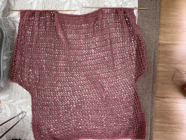夏物クリアランスでちょうどいい糸を見つけたのでこの時期からサマーニットを編みます 全体に透かし編みで参考にした編み図ではシンプルなデザインなのですが、アレンジを加えてスリットを開けようかと思っています えりはボートネックで