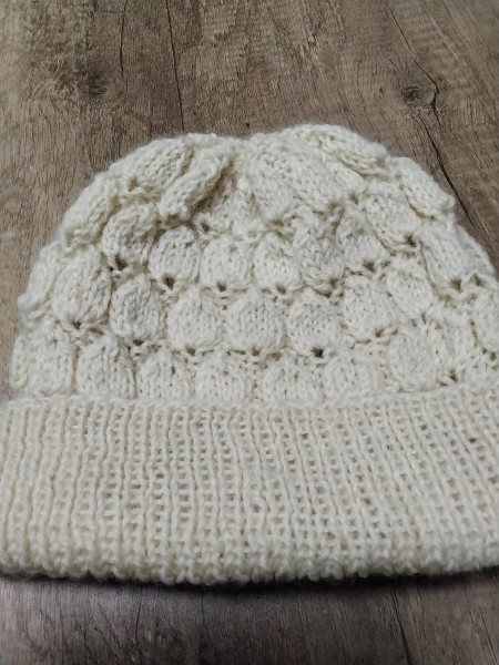 残り糸活用、、可愛い編込み帽子ができました。初めてのノット編みは、縄編より涼しげです
