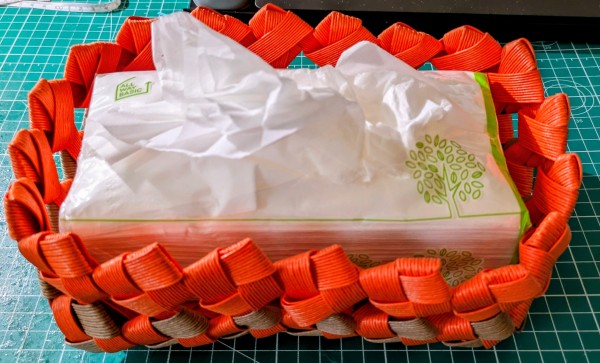クラフトバンドで大きなかごを作りました。