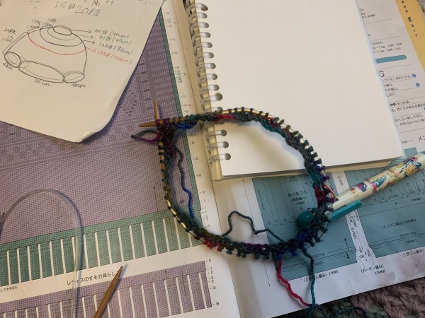 ネットで見つけた丸ヨークのセーターの編み方を元に母へのプレゼントととして制作中
