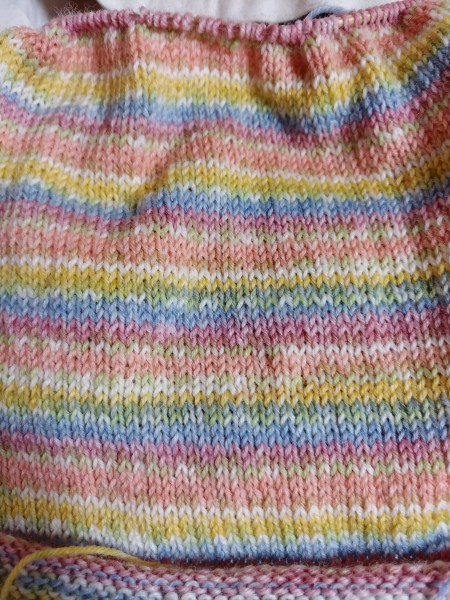輪針で腹巻き帽子 3号40cm 150目 4歳、頭囲50cm