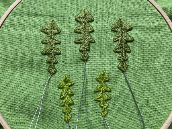 根っこつきのたんぽぽを立体刺繍で作っています。 写真はたんぽぽの葉っぱを刺繍したものです。