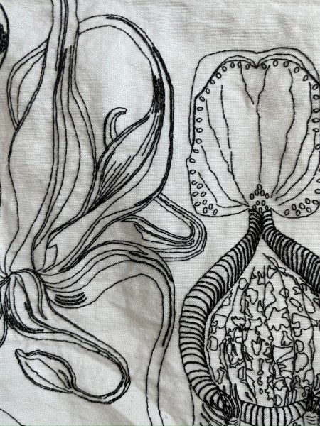 細い花びらの刺繍完了。 これから裏のほつれ加工をして、布から切り取っていきます。
