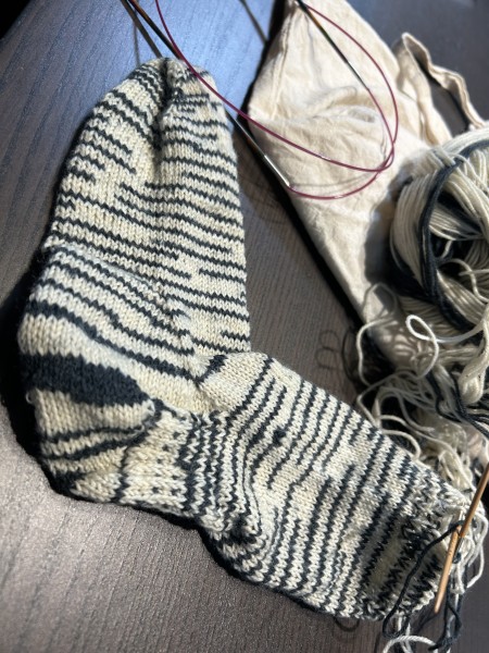 初めての靴下 片足完成 二足目のつま先苦戦中