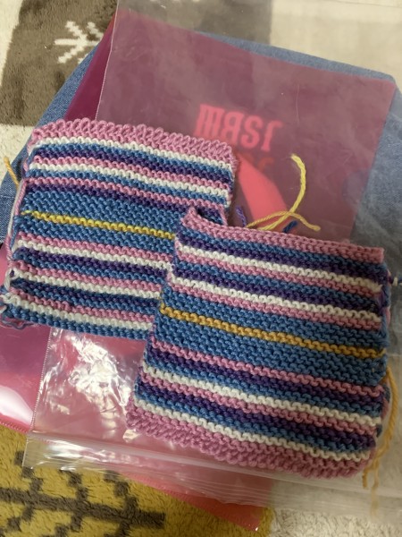 【棒針編みモチーフのブランケット】 棒針編み練習。