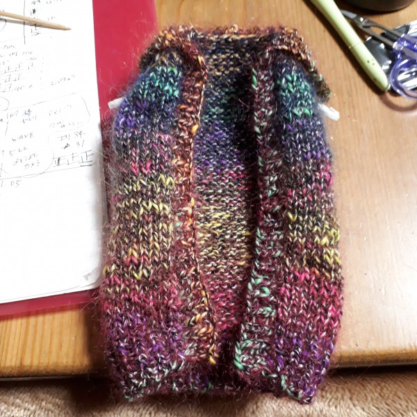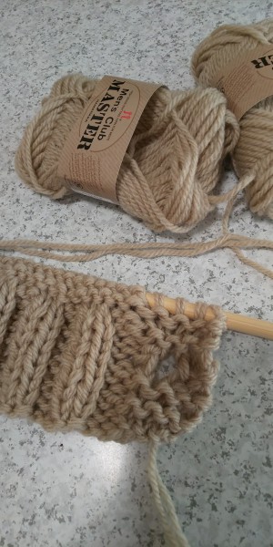 前回作ったガーター編みの手袋の編地に引き上げ編みを増やしたら、好きな感じのフォルムになりました。 春先まで使えそうです。