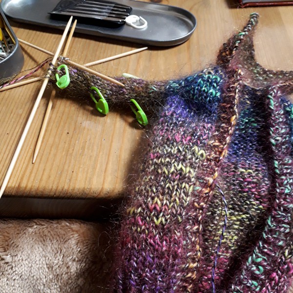 昨日はニットの日だそうで、初めて編んでみた、カノン編みのカーディガン! 母の遺品のモヘアの糸と母に編もうと思ってた紫色の糸と2本取りで、叔母にプレゼントするため編みました。ところが小柄な叔母にはブカブカ過ぎて断念! まだ糸が残っているので、ベストなら編めるかな? 素敵にハンドメイドより