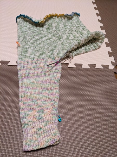 初めてシャドウラップで踵を編んだ靴下 引き返した箇所が分かりやすくて良いかも