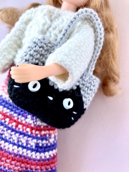 あけましておめでとう御座います^ ^ リカちゃんが持てるサイズのバッグを編みました。デザインは前に作ったものと同じです。写真だと分かりにくいけど、灰色の部分には銀のラメが入ってる毛糸を使いました^ ^