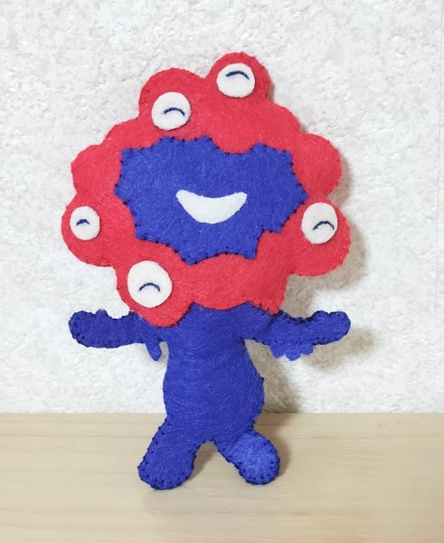 大阪万博キャラクター、ミャクミャクさまにハマった母に贈ろうと作りました。布フェルトと刺繍で作成!