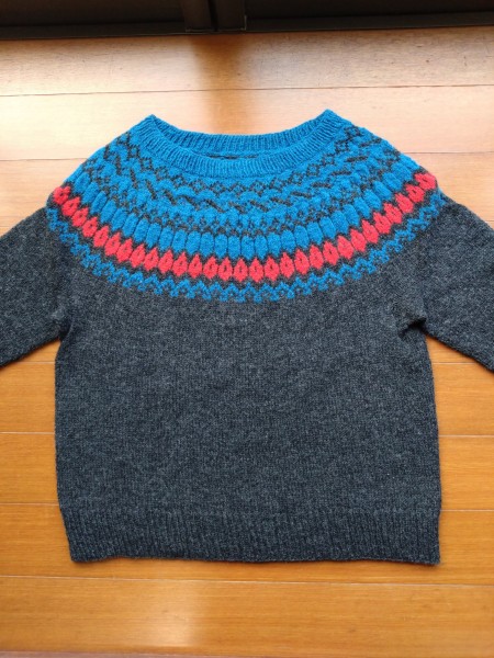 michiyoの4size knitting 日本ヴォーグ社 の編み込みヨークのプルオーバーを編みました。 LLサイズで編んで、ゆったり着ようと思います。 本の色とは少し変えました。