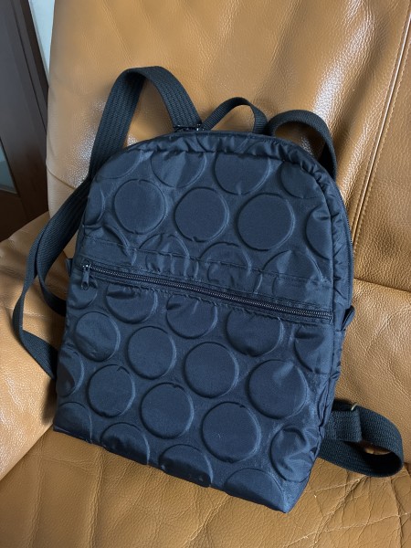ナイロン素材のコンパクトリュック。徒歩通勤用に手ぶらで歩ける様、軽くて撥水性のあるナイロン素材で作りました。黒だけど水玉模様でオシャレに仕上がりました。 今年も趣味も仕事も頑張ろう。